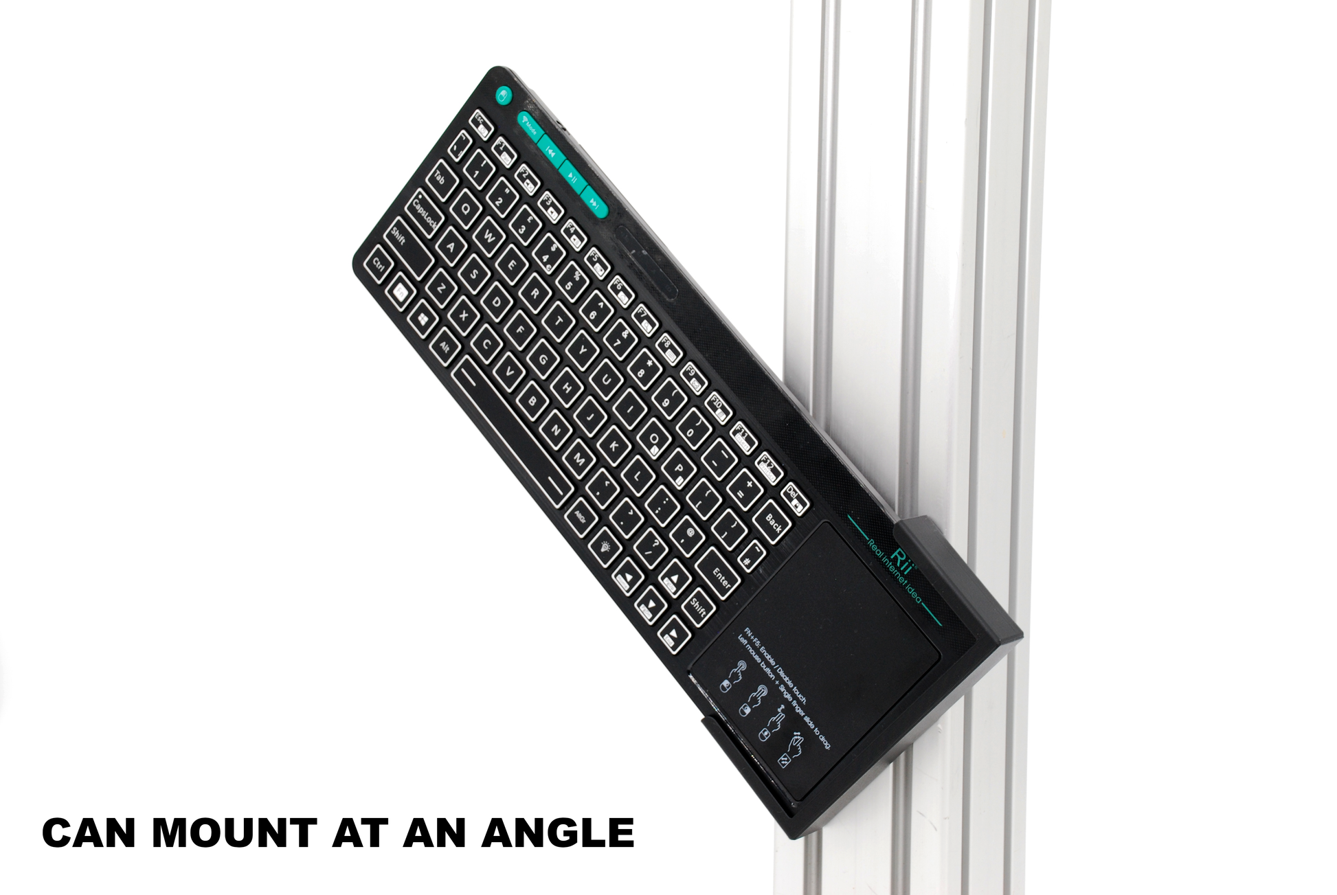 Keyboard Holder for Rii RT518S Wireless Keyboard Sim Rig 8020 Any Surface Mount